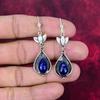 أقراط ياقوت أزرق، أقراط أحجار كريمة مصنوعة يدويًا، أقراط فضة إسترليني صلبة عيار 925، مجوهرات عتيقة، لهدية الخطوبة