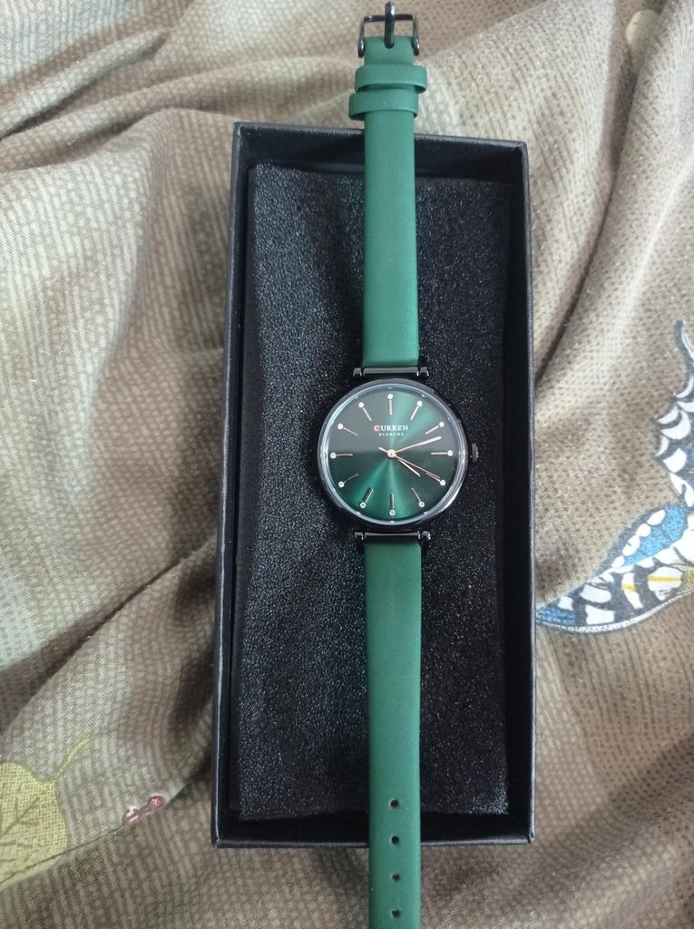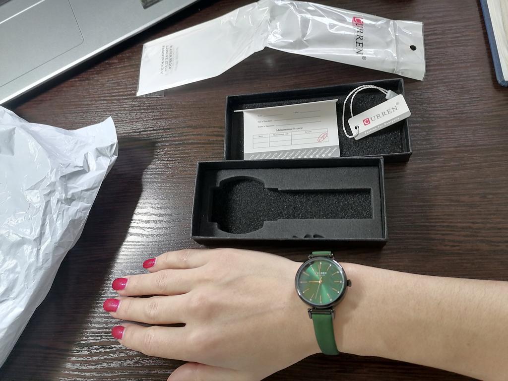 CURREN Dámské hodinky Nové TOP značkové luxusní Quartz náramkové hodinky s koženým ciferníkem s lesklými kamínky Zelené hodiny Dámské