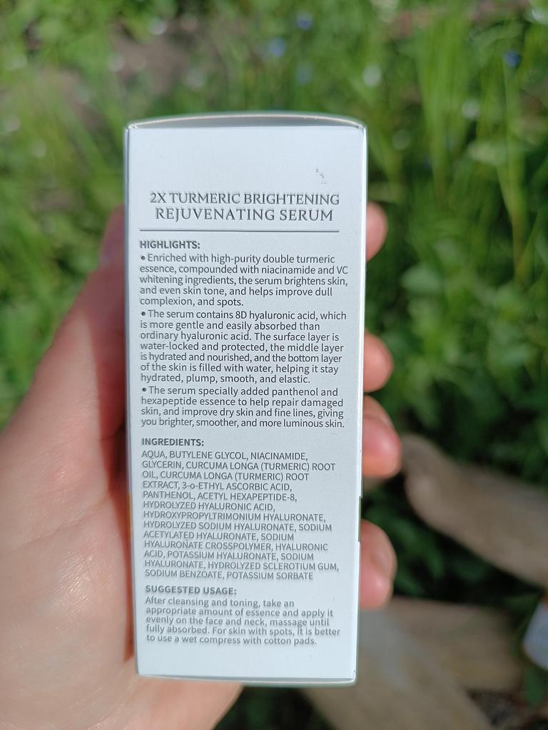 2x turmeric + niacinamide + vc,vb5 + acetyl hexapeptide-8,8d hyaluronic acid