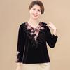 Vintage Women Clothing Diamonds Casual Long T-shirt Spring Autumn New Patchwork V-neck Fashion Loose Elegant Long Sleeve Tops