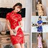 Dámské spodničky velké velikosti Mandarinový límec s krátkým rukávem Diskové přezky Boční dělení Lady Cheongsam Ušlechtilý květinový potisk Čínský styl Qipao Dámské oblečení
