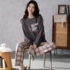 Women's Long-sleeved Comfortable Breathable Homewear Simple Loose Round Neck Four Seasons Top + Pants Thin Section Two-piece Set