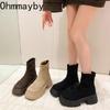 Módní dámské boty na platformě s podpatkem, krátké boty, módní zadní zipy, protiskluzové boty, nové podzimní a zimní dámské kotníkové boty