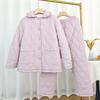 Middle Aged Elderly People Coral Velvet Pajamas Suit Winter Three Layer Thick Warm Women Plush Cotton Jacket Pants Two PCS Women