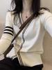 This stylish cardigan is a versatile addition to your wardrobe. Perfect for pairing with shirts and casual bottoms like jeans or pants, it features trendy stripes on the buttons, pockets, and hem for a street-style vibe. The color-block design adds a fashionable touch, while the single-breasted placket and V-neck enhance its overall appeal.