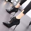 Women Lady Thin Heels Pointed Toe Chain Stylish Retro Punk Sexy Shoes Boots