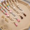 Badge Card Holder and Beaded Lanyard Set for Women Clear Card Holder with Beads Neck Strap Tassels Charm Keyring Loop