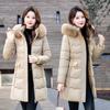 Péřová bavlněná vycpaná bunda Dámská volná bavlněná vycpávková bunda v dlouhé části byla tenká vycpaná bunda Plus tlustý kabát velké velikosti