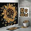 4PCS Flower Shower Curtain Set with Non-Slip Rugs Toilet Lid Cover and Bath Mat Black Shower Curtain Waterproof Bathroom Decor