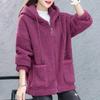 Svetr z jehněčího sametu Dámský Podzim Zima Volný Kardigan Dlouhý rukáv S kapucí Hrubý Kabát Jednobarevný Bunda na zip Top