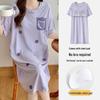 Nadměrná velikost 4XL 5XL Dámské sladké noční košilky s krátkým rukávem a hrudními vycpávkami Dámské letní Květinový potisk Spací košile Domácí Dívčí Roztomilá noční košile Volnočasové oblečení