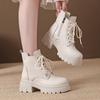 Kožené boty Dámské Podzim 2024 Nové Kotníkové boty pro ženy s dvojitým zipem Platforma Silný podpatek Motorkářské boty Dámské