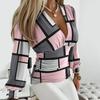 Dámská móda Ležérní jaro podzimní jednobarevné halenky a košile s dlouhým rukávem a výstřihem do V