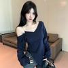 Fake Two-piece V-neck Off-shoulder Short Top for Women's Spring and Autumn Clothing Niche Design Thin Pullover Fashionable T-shirt for Women