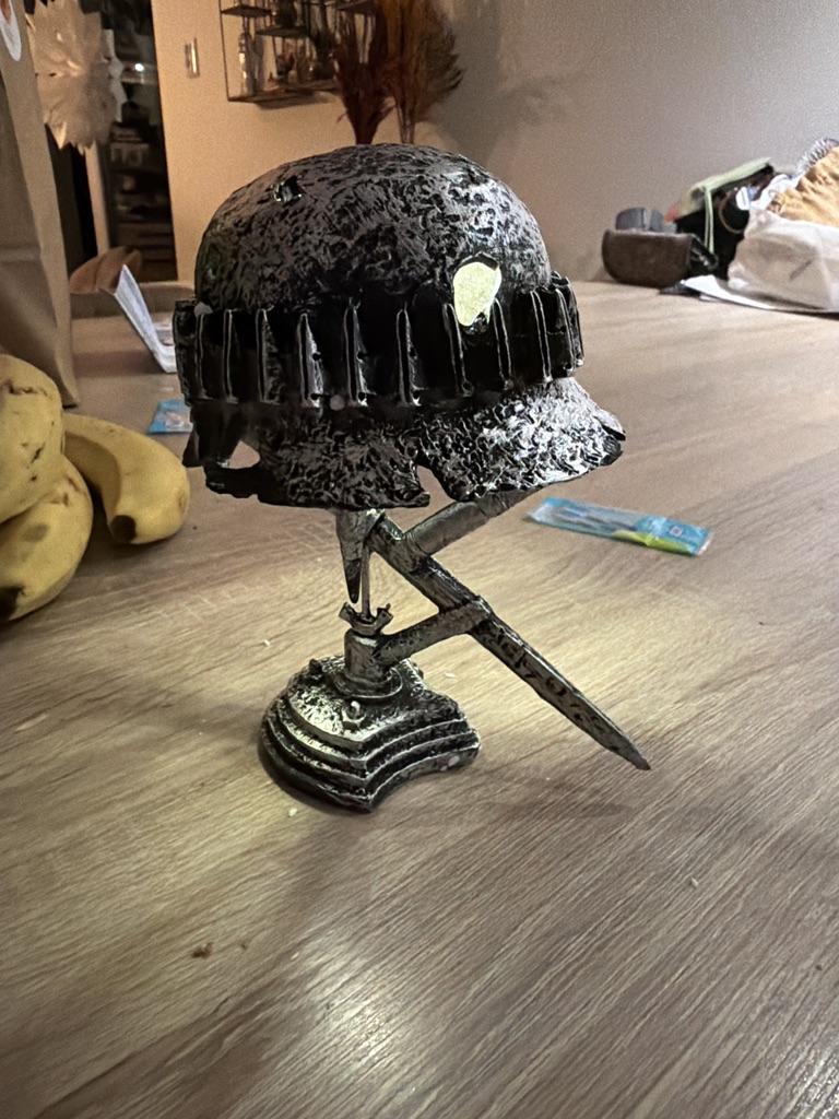 Válečná relikvie Helma Lampa Socha Pryskyřice Abstraktní Vintage Domácí Světlo Dekorace Ozdoby Sošky Sochařství Řemeslo pro Kancelářský Stůl