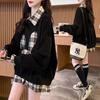 2024 Winter Women's Faux Two-Piece Velvet-Trim Sweater - Plus Size