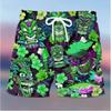 Pohodlné šortky se vzorem lebky, pánské ležérní mírně strečové šortky s elastickým pasem se stahovací šňůrkou pro letní basketbalový plážový resort