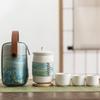 Čínská čajová souprava Ručně malovaná podglazurová keramická skleněná čajová souprava Přenosná venkovní cestovní Kung Fu čajová souprava 1 konvička 3 šálky