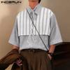 INCERUN Summer Men Short Sleeve Striped Patchwork Lace-up Casual Loose T-shirts