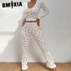 GMXIA Homewear Love Print Long-sleeved Lapel Pyjamas Women Can Be Worn Outside Trousers Two-piece Set