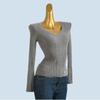 Korean Style V-Neck Saturn Embroidered Slim Knit Top for Women