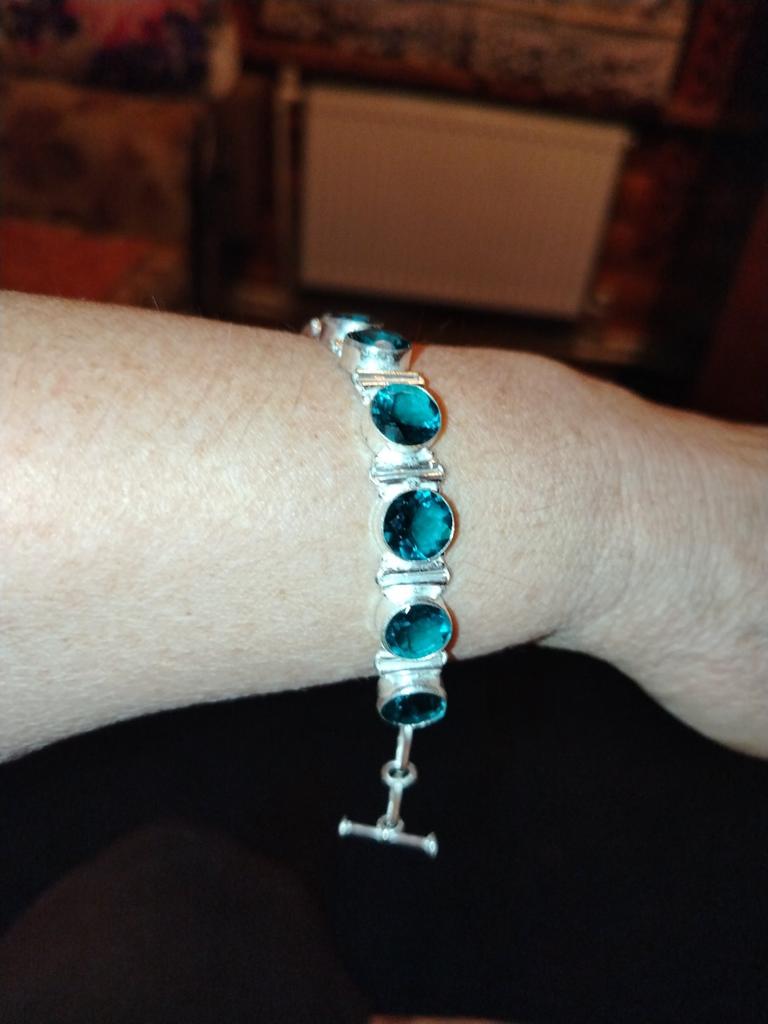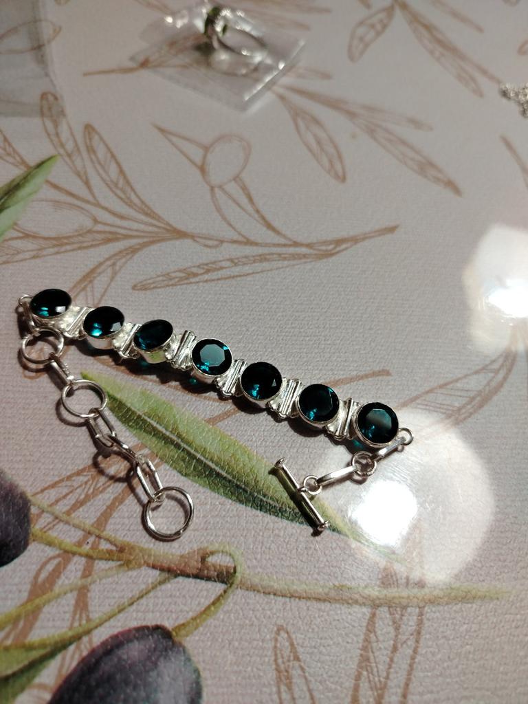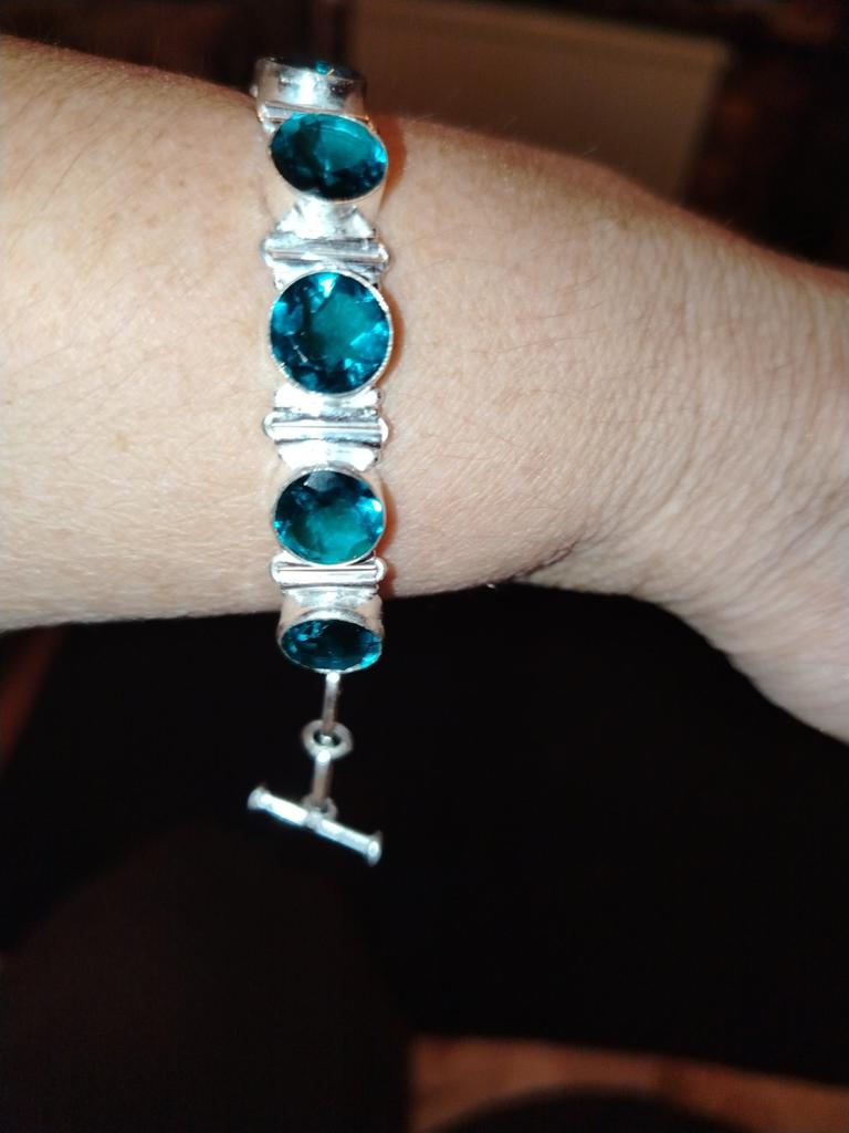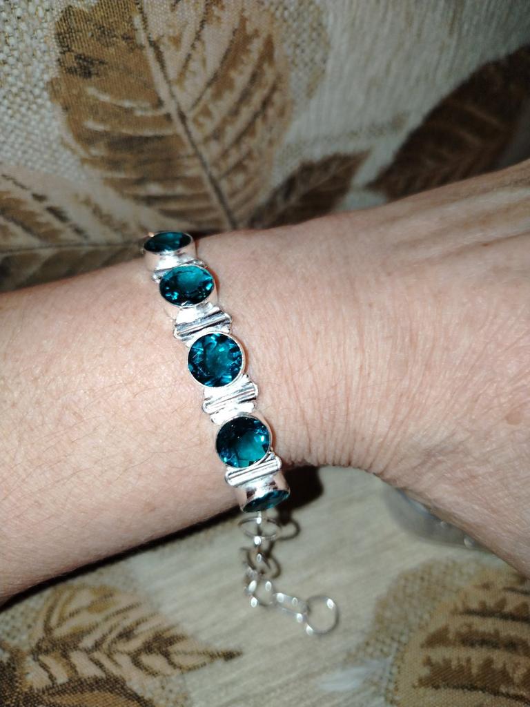 Šperky z drahokamů modrého apatitu ze sterlingového stříbra 925 Ručně vyráběný náramek 9" Pro maminku RB-7-14