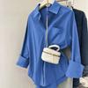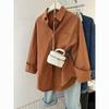 Caramel Mid-Length Women's Autumn Shirt Jacket - Casual, Long-Sleeved, Loose, Slimming Top