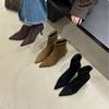 Women's Fashion Pointed Toe Ankle Boots Retro Concise Thin Heels Low Heels Flock Short Boots Solid Color Size 35-42 Women Shoes
