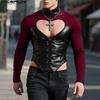 INCERUN Autumn Men Collarless Long Sleeve Zip-up PU Leather Casual Cropped Coats Jackets