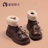 Girls' velvet 2025 Martin boots Korean version bow fluffy short boots medium and older children's cotton boots thick-soled princess style boots