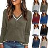 Women's Casual And Fashionable V-neck Contrast Color Long-sleeved Top