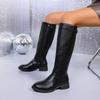 Fashion Comemore Autumn Winter Women's Boots Elegant Chunky Middle Heeled Knee High Boots for Women Solid Round Toe Leather Long Botas