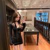 Pure desire style sexy split square neck striped dress femininity fashion slim and thin knitted dress spring new