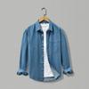 Embrace timeless style with this retro-inspired men's shirt, crafted from high-quality cotton for ultimate comfort and durability. Featuring a solid pattern, this light denim shirt showcases a classic square neckline and long sleeves, making it perfect for both casual and semi-formal occasions. The design includes practical double pockets, adding a touch of functionality to its stylish appearance. Ideal for transitioning through the cool autumn season, this versatile shirt effortlessly blends vintage charm with modern elegance.