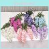 This artificial tri-branch wisteria floral garland mimics natural purple wisteria with vibrant multicolor options. Crafted from durable fabric with precise weaving, it measures approximately 39 inches long, offering versatile decorative value. Suitable for wedding venues, event backdrops, or home decor. Wipe clean with a damp cloth to maintain its appearance.