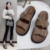 Flat-bottomed French small cool slippers women's shoes 2025 new summer belt buckle fashion outer wear soft-soled beach sandals