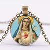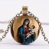 Náhrdelník s přívěskem Ježíše a Panny Marie, přívěsek s drahokamem prověřeným časem, vintage náhrdelník pro ochranu víry.