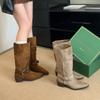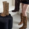 Coarse heel suede pointed boots women's 2025 autumn and winter new two-wear women's boots belt buckle sleeve western cowboy boots