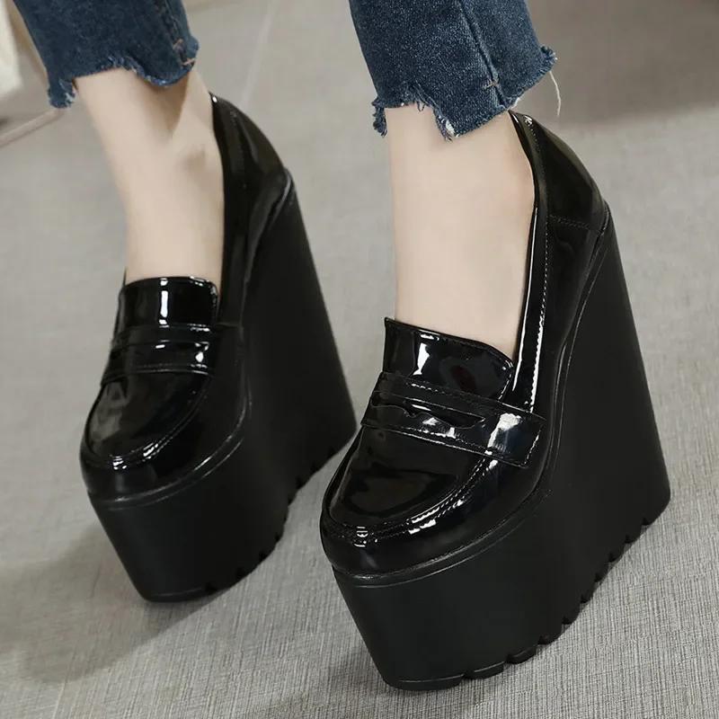 Fashion 2025 New wedge with thick bottom round single shoes female inside increased 16 cm suede high heels simple elegant women's shoes