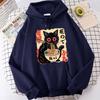 Men's Fashionable and Versatile Fleece Sweatshirt, Thin and Warm, Three-dimensional Pocket, Cute Cat Print Pattern