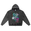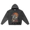 DTG print Knitted Denim Zip-Up Hoodie Streetwear Brother Print Zipper Hoodies