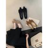 Flat single shoes women's 2025 new pointed shoes rubber sole bow black work ladyshoes