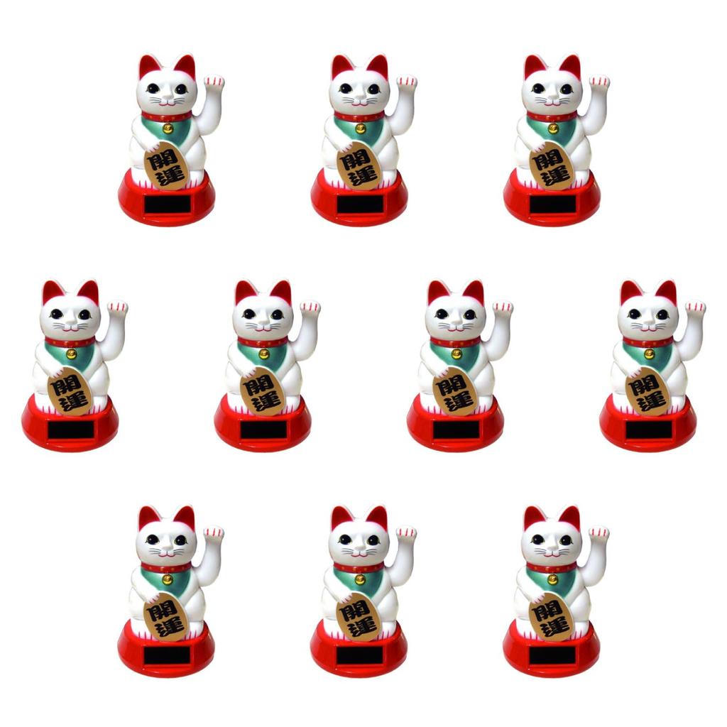 Castle Enterprises Waving Articulating Set of Bulk a Delightful Japanese Souvenir for Comes in a Clear Case Maneki-neko (Small) (White) Solar-Powered,