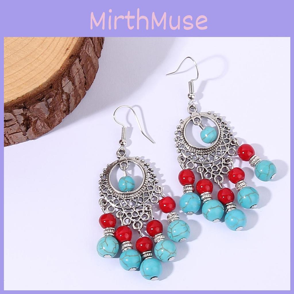 Ethnic Simulation Turquoise Beaded Earrings With Silver Filigree For Casual Wear