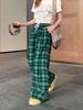 Spring Autumn Elastic Waist Vintage Plaid Printing Pants Women Loose Casual Fashion All-match Wide Leg Trousers
