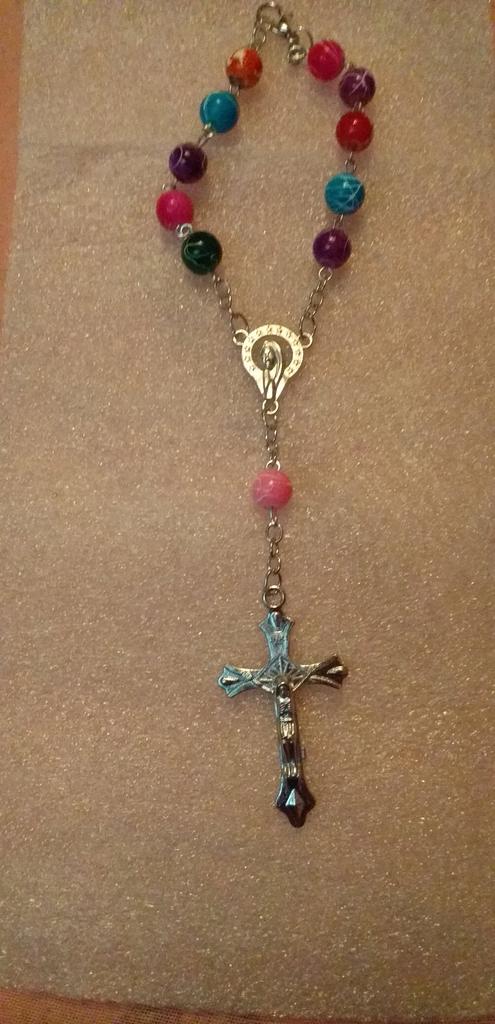 Christianity Goddess Jesus Cross Pendant Colorful Beads Chain Women Bracelet