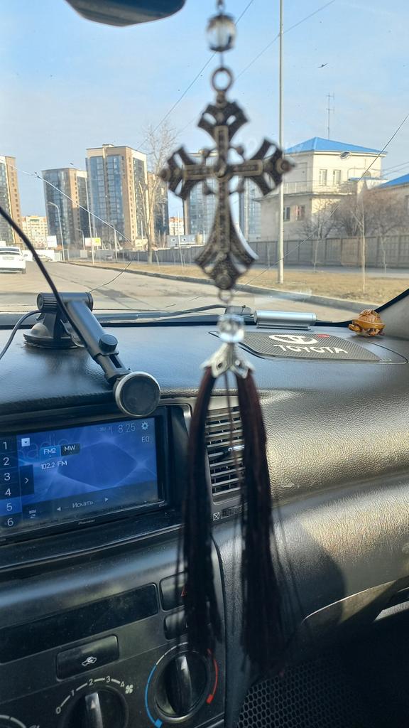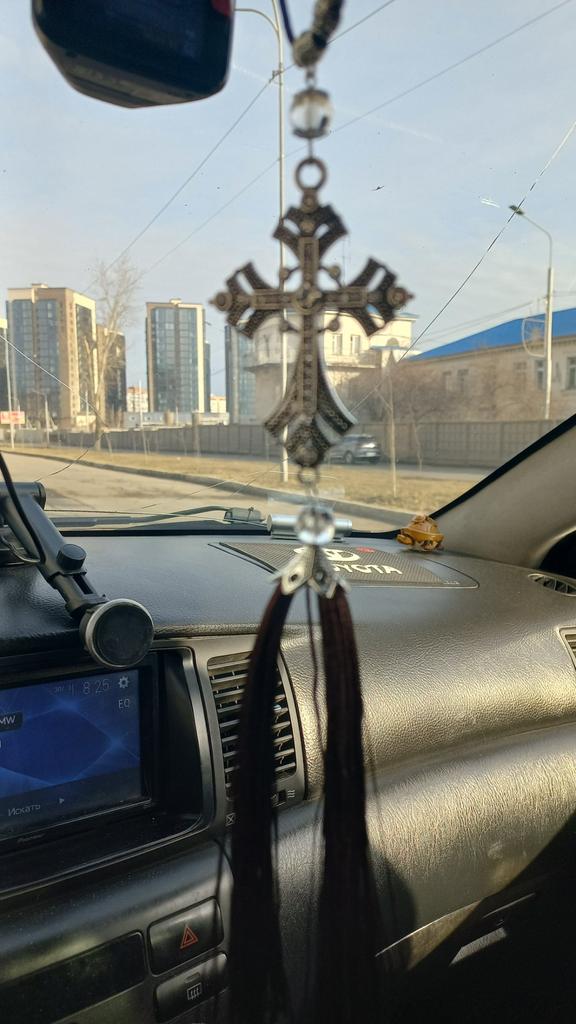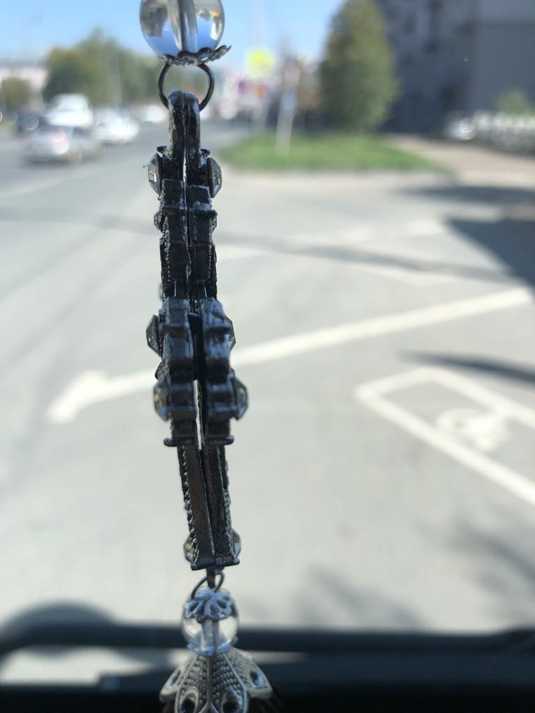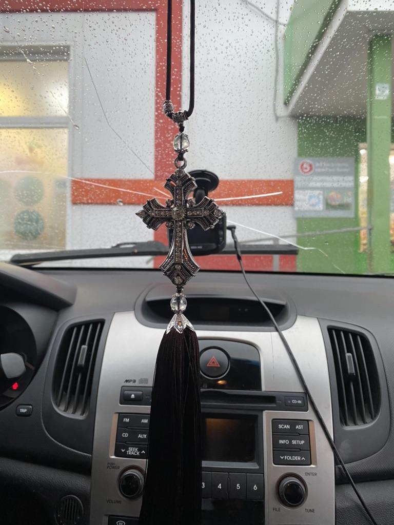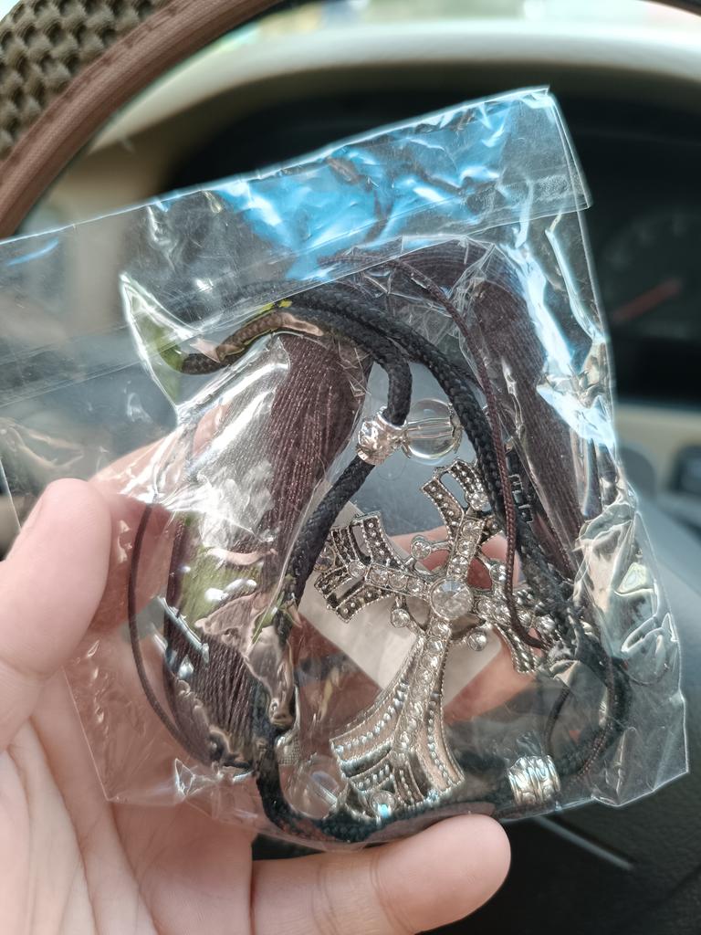 The cross is beautiful. But he didnβt go into the car.