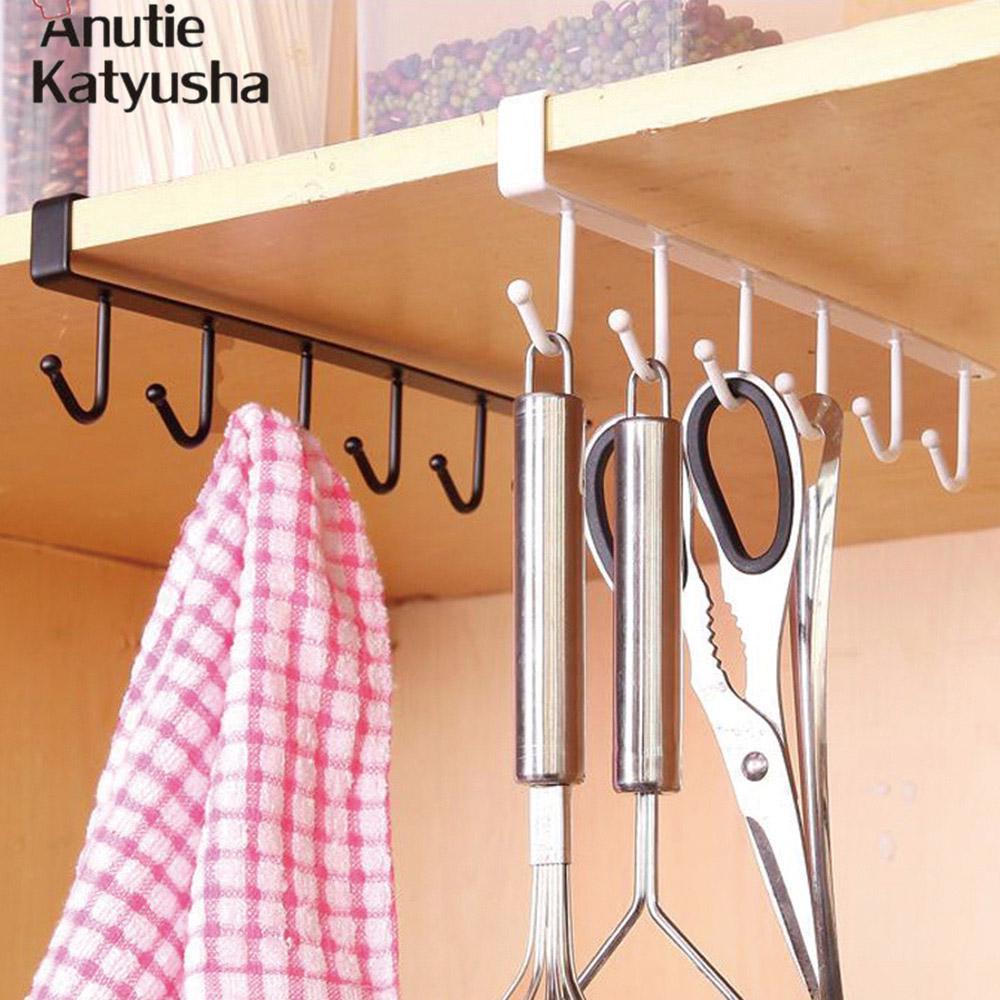Iron Kitchen Storage Rack Cupboard Hanging Hook Shelf Dish Hanger Chest Storage Shelf With 6 Hooks