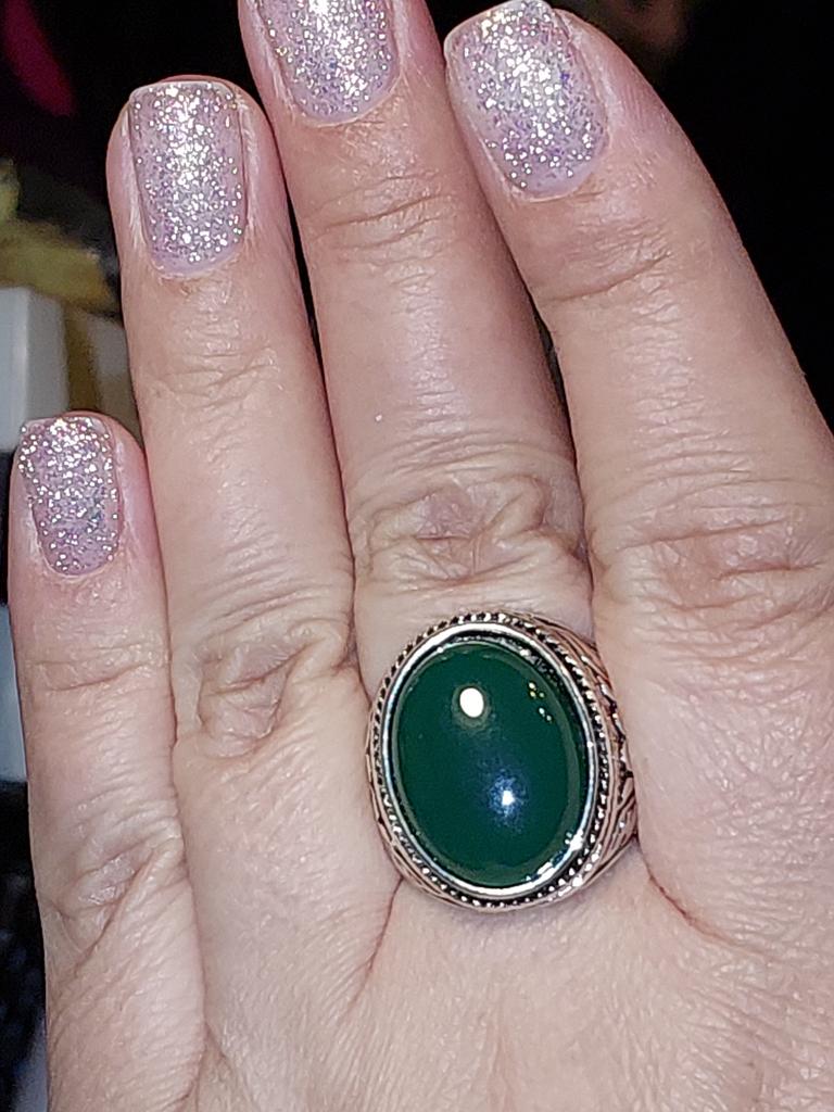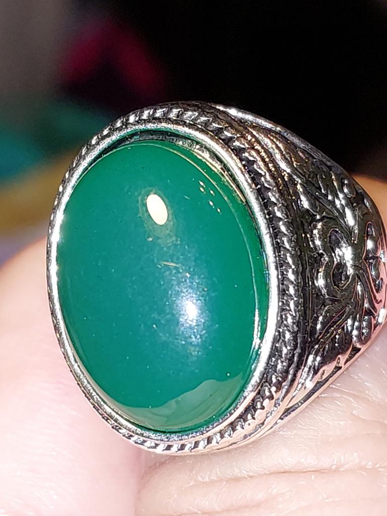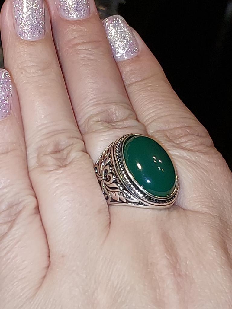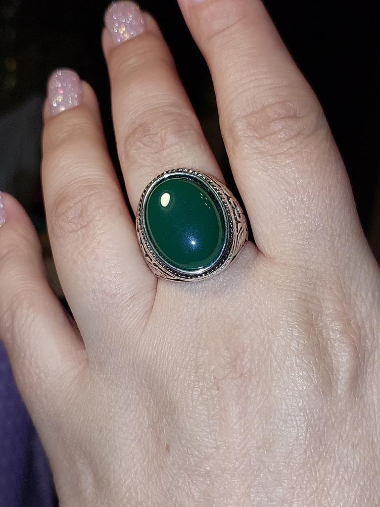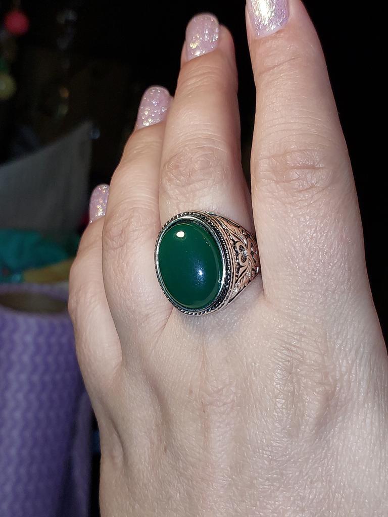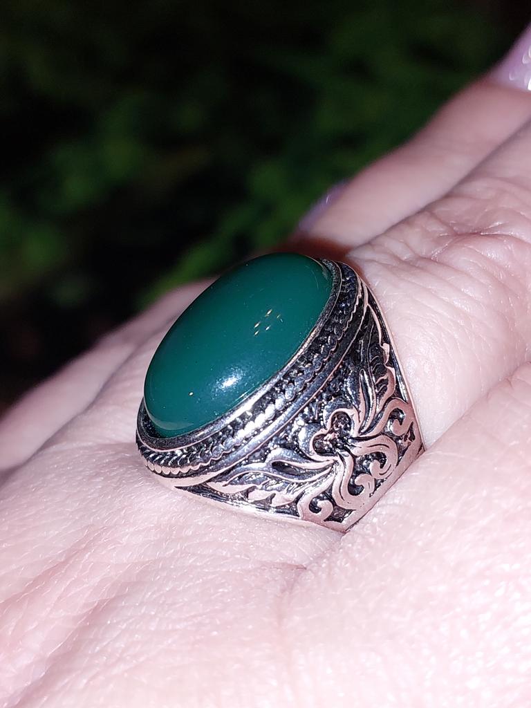 Men Vintage Artificial Gem Finger Ring Carving Band Jewelry Party Banquet Gift