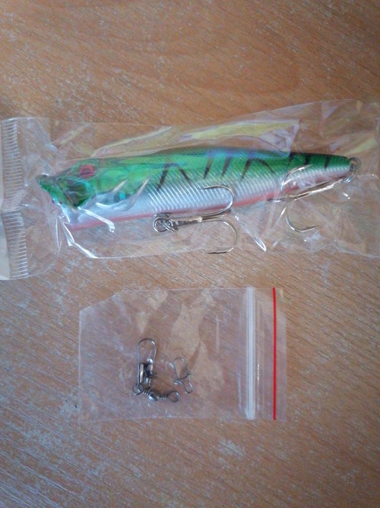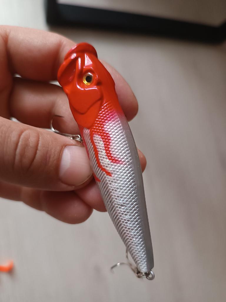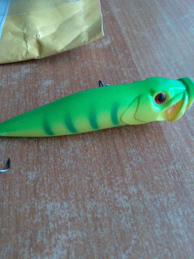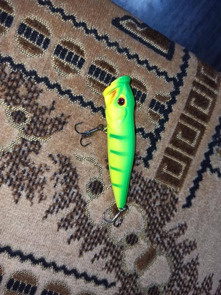 Not a big popper, about 10cm, behaves effectively in water like a regular popper